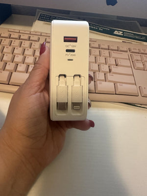 - Built-in Retractable Cables: Two 3-ft (90 cm) retractable cables — one Lightning and one USB-C, neatly integrated into the charger.